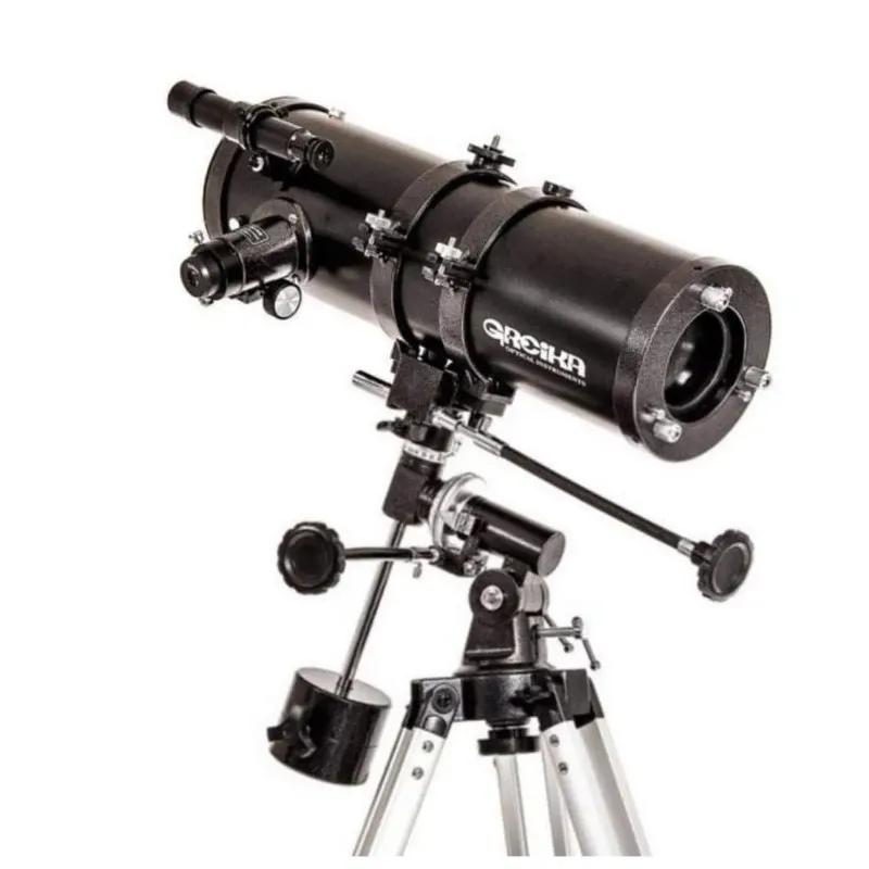 O telescópio refletor newtoniano equatorial 1400x150mm da greika é composto de material em alumínio com um espelho interno que direciona a rota da imagem até o fundo do tubo ótico (corpo do telescópio), onde ficam localizadas as oculares. Este modelo ainda possui um grande ampliação, devido a sua distância focal de 1400mm e abertura de 150mm, além de ser um instrumento completo, já que vem acompanhado de um tripé de alumínio 130cm, uma base equatorial, um localizador (mira), três oculares (k4mm, pl6.5mm, pl25mm), uma lente barlow 2x, uma lente barlow 3x, uma bandeja de para organização das oculares, um filtro lunar e um filtro solar. obs.: os aumentos são relacionados diretamente com o tipo de ocular que é utilizada. Quanto menor o diâmetro, maior a ampliação. é importante sempre lembrar que jamais deve-se olhar diretamente para o sol, pois pode causar sérios danos na retina dos olhos. características do telescópio refletor newtoniano equatorial greika 1400x150mm - 1400150-eq modelo: 1400150-eq; tipo: refletor newtoniano equatorial; material/composição: alumínio e plástico; abertura: 150mm distância focal: 1400mm; oculares: k4mm (350x). pl6, 5mm (215x); pl25mm (56x).