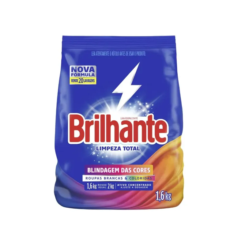 Brilhante Limpeza Total - Lava-Roupas em Pó, Roupas Brancas e Coloridas, Ativo Concentrado, Pacote 1,6kg