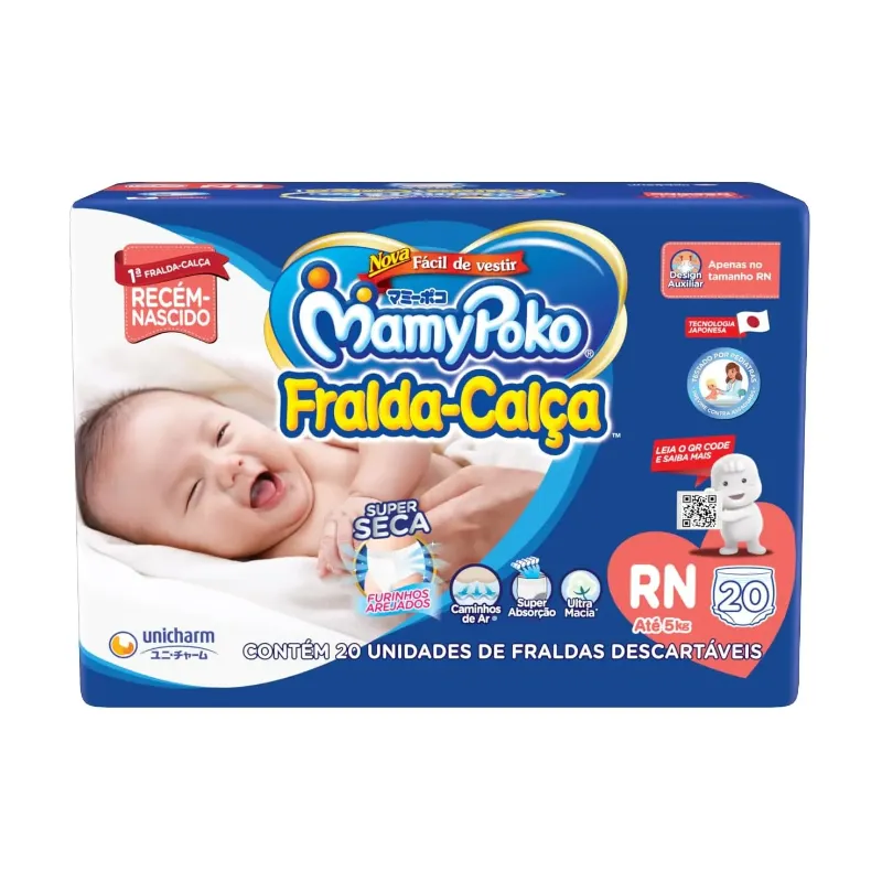 MamyPoko Fralda-Calça é a primeira a lançar o tamanho RN! Possui exclusivos Furinhos Arejados na cintura que liberam a umidade para fora, Caminhos de Ar que melhoram a circulação de ar dentro da fralda e absorve até 5 copos de líquido, mantendo o seu bebê sempre sequinho e confortável.