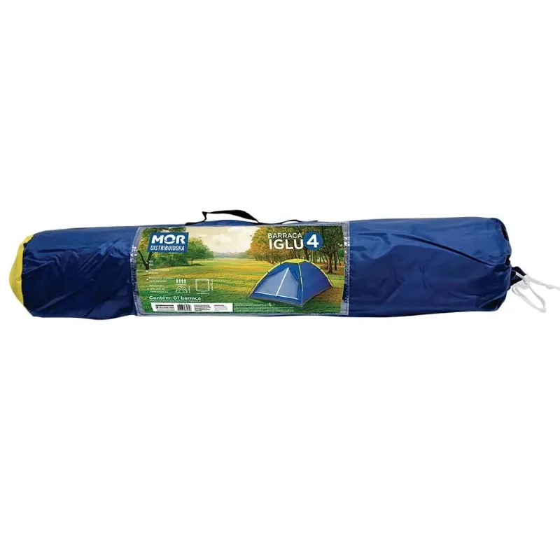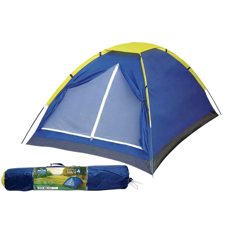 As Barracas Iglu da Mor são super fáceis de montar devido a sua estrutura em varetas de fibra de vidro interligadas. São confeccionadas em poliéster e a costura entre o piso e o dormitório é invertida, evitando vazamentos de água para o interior da barraca. O piso é confeccionado em polietileno (ráfia) reforçado. Além disso, elas possuem sacola de nylon para transporte, mosquiteiro na porta e no teto, local para pendurar lanterna dentro da barraca e proteção contra vazamentos! Este produto é próprio para 4 pessoas.