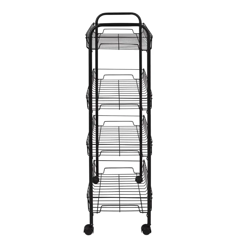 Sua cozinha ficará completa com a Fruteira 4 Andares Preta com Rodas da Mor.Suporta até 8Kg, todos distribuídos entre 2kg para cada andar, organizando frutas e verduras de forma uniforme.Resistente, sua composição é de aço. Prática, pode ser movimentada para outros ambientes, complementando cada lugar da sua cozinha.Versátil, pode ser usada de diversas maneiras, no escritório como organizador e até no banheiro para mais praticidade.