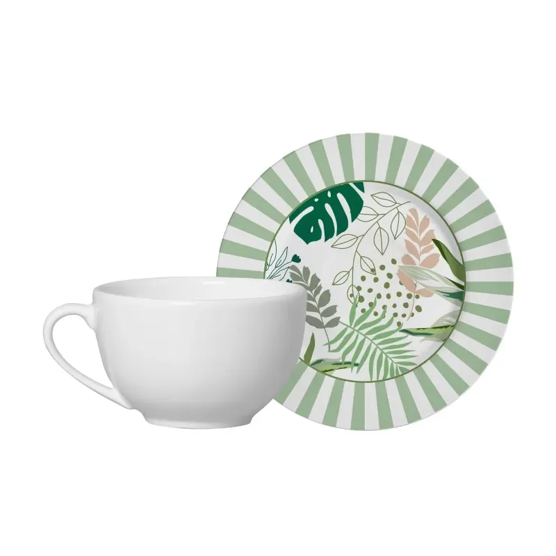 Peças elaboradas em cerâmica branca de alta resitência com processo de decoração digital. Podendo ser levadas ao micro-ondas e lava-louças. Acabamento de brilho. Produto não libera substâncias tóxicas (chumbo e cádmio).