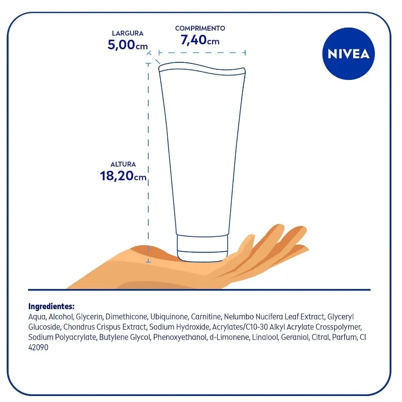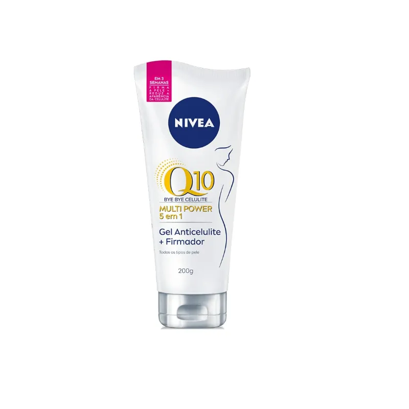 O que é? Creme firmador corporal em gel que melhora a flacidez, reduzindo furinhos e celulites em até 3 semanas. Aproveite e leve o seu! Para que serve o Gel Firmador Nivea Bye Bye Celulite? Com Q10, coenzima que estimula a renovação celular, e extrato de lótus, que reduz a formação de novas células de gordura. Textura leve em gel é rapidamente absorvida pelo corpo. Benefícios e diferenciais - Não fica pegajoso - Não precisa de massagem - Dermatologicamente testado Como usar o Gel Firmador Nivea Bye Bye Celulite? Aplique o creme nas áreas que deseja resultado, como coxas, glúteos, barriga e culotes. Não precisa massagear. Uma unidade de embalagem contém 201g