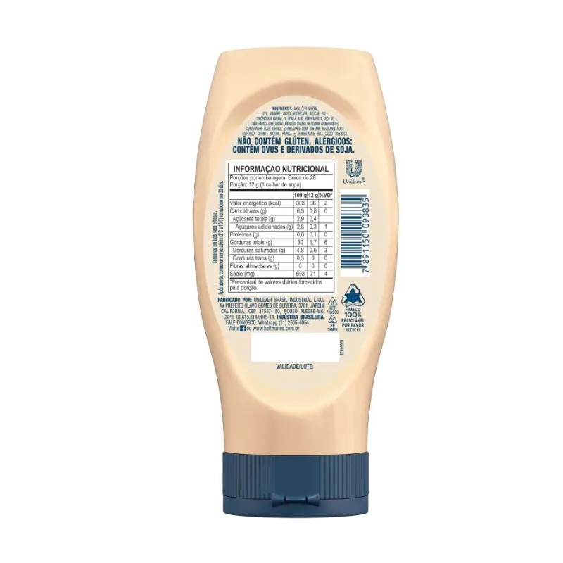 Gosta de churrasco? Então essa maionese é para você! A Maionese Hellmann's Churrasco possui um sabor autêntico com um toque defumado e entrega muito sabor para tornar todos os lanches e pratos ainda mais deliciosos e cremosos. Esta maionese de ovo possui ômega 3 e 6, provenientes do óleo de soja, e não contém glúten, resultando em um produto delicioso e mais saudável. É a perfeita combinação para seus hambúrgueres, batatas fritas, churrasco, wraps, sanduíches, um molho diferente ou até mesmo com o petisco e combinações de molhos para receber os amigos e familiares. Combine suas receitas com a Maionese Hellmann's Churrasco e garanta uma explosão de sabor inesquecível! Hellmann's transforma todos os pratos em momentos únicos, rápidos, saborosos e especiais. Experimente você também e delicie-se! Nós na Hellmann's acreditamos que o segredo para o sabor está nos ingredientes que você utiliza em suas receitas. Por isso, nos dedicamos a oferecer uma cremosidade sem igual e utilizamos somente ingredientes de alta qualidade, como ovos de galinhas livres e óleo de soja, para criar uma maionese que proporcione aos nossos consumidores um sabor irresistível e sem comparação. Cada frasco é 100% reciclável, cuidando do meio ambiente enquanto deixa seus pratos muito mais saborosos. Mais sabor, menos desperdício. A comida é importante demais para ser desperdiçada, por isso na Hellmann’s investimos na versatilidade de nossos produtos. Isso permite que você transforme o que restou em sua geladeira em verdadeiras e deliciosas refeições. Inspire-se com as nossas receitas. Com a Maionese Hellmann's Churrasco nada se desperdiça, tudo se aproveita. Experimente você também! Mais que sabor, sabor Hellmann's! A embalagem pode variar.