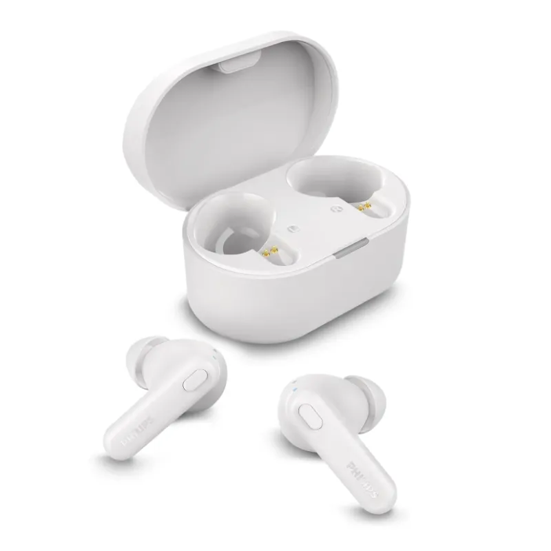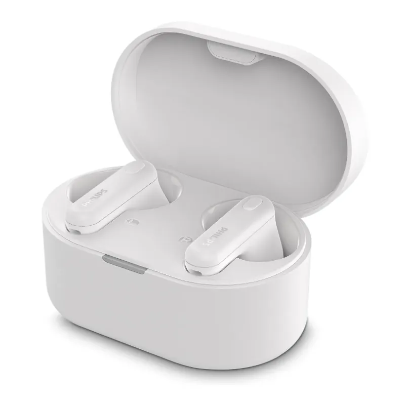 Fone de ouvido sem fio TWS Philips TAT1108WT/00 - bluetooth com microfone, formato em haste, IPX4, energia para 15 horas