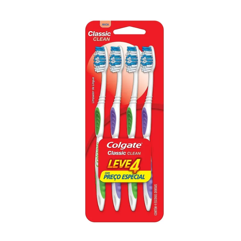 Colgate Escova De Dente Classic Clean Macia 4 Unidades | Cores Sortidas