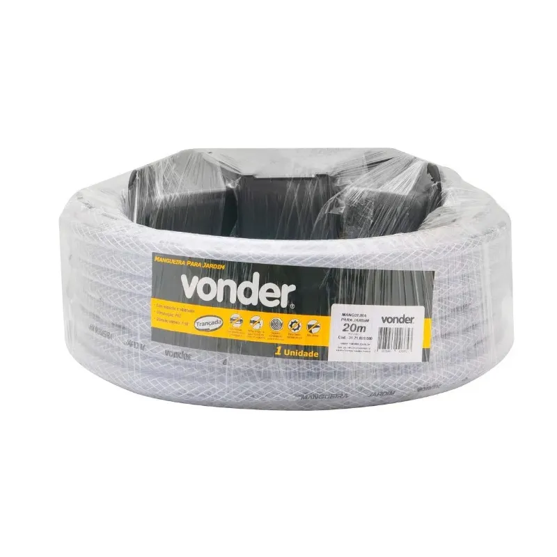 Pronta para o uso, com conexão, esguicho e acessórios para fixar o suporte indicada para condução de água fria para limpeza, irrigações em jardins e serviços gerais.