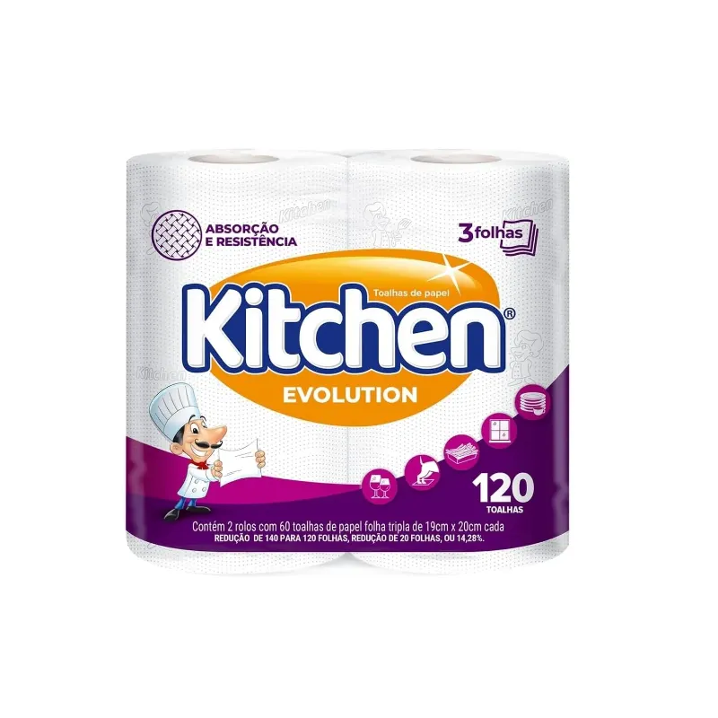 As toalhas de papel Kitchen são a perfeita escolha de quem deseja máxima absorção, resistência e praticidade para o dia a dia. Kitchen serve para tudo nas mais variadas ocasiões, desde a absorção em alimentos até a secagem de louças e superfícies, o embrulho de lanches e frutas e auxílio na limpeza leve. Disponível nas versões folha dupla com 120 folhas, 240, 360 e 540 folhas.