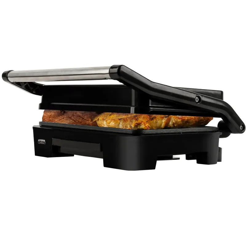 O Grill Elétrico ASTERIA COMPACT da Mallory é multifunções com placas ajustáveis. Versátil, grelha hambúrgueres e filés. Tem acabamento em aço inoxidável, placas com grande superfície antiaderente, luzes indicadoras de funcionamento, coletor de gordura integrado e alça com toque frio.