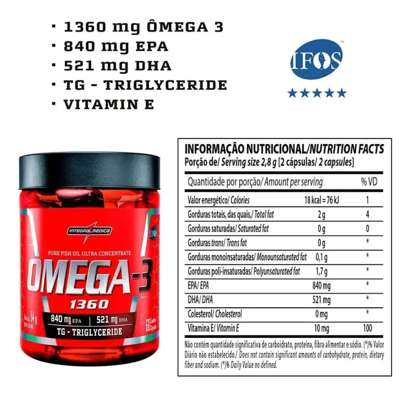 Os benefícios do ômega 3 para manutenção de níveis saudáveis de triglicerídeos são amplamente estudados pela ciência. Integralmédica omega-3 oferta o nutriente na forma tg, a mais biodisponível de todas. A pureza da matéria prima é certificada pelo ifos (international fish oil standards program.