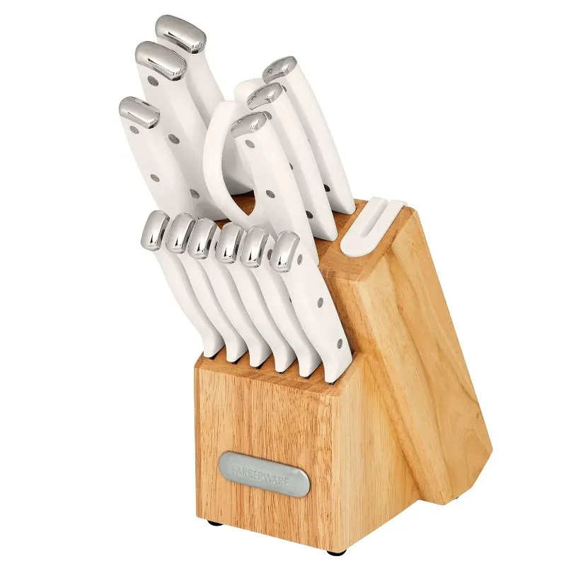 Farberware Edgekeeper Conjunto de facas com rebites triplos com amolador embutido, 14 peças