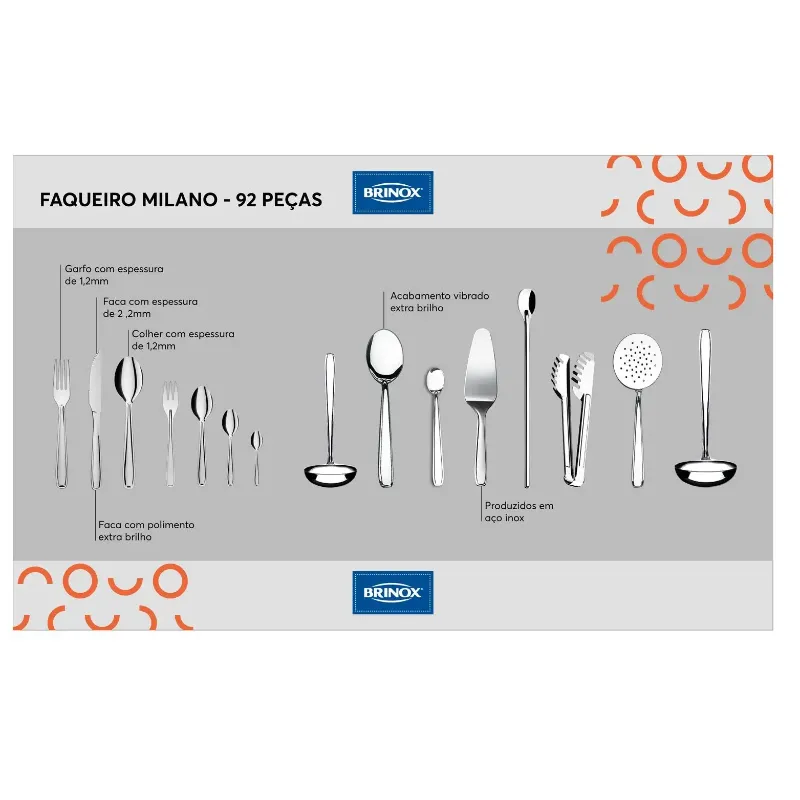 Faqueiro Brinox Inox 92 Peças Milano - 5123/430