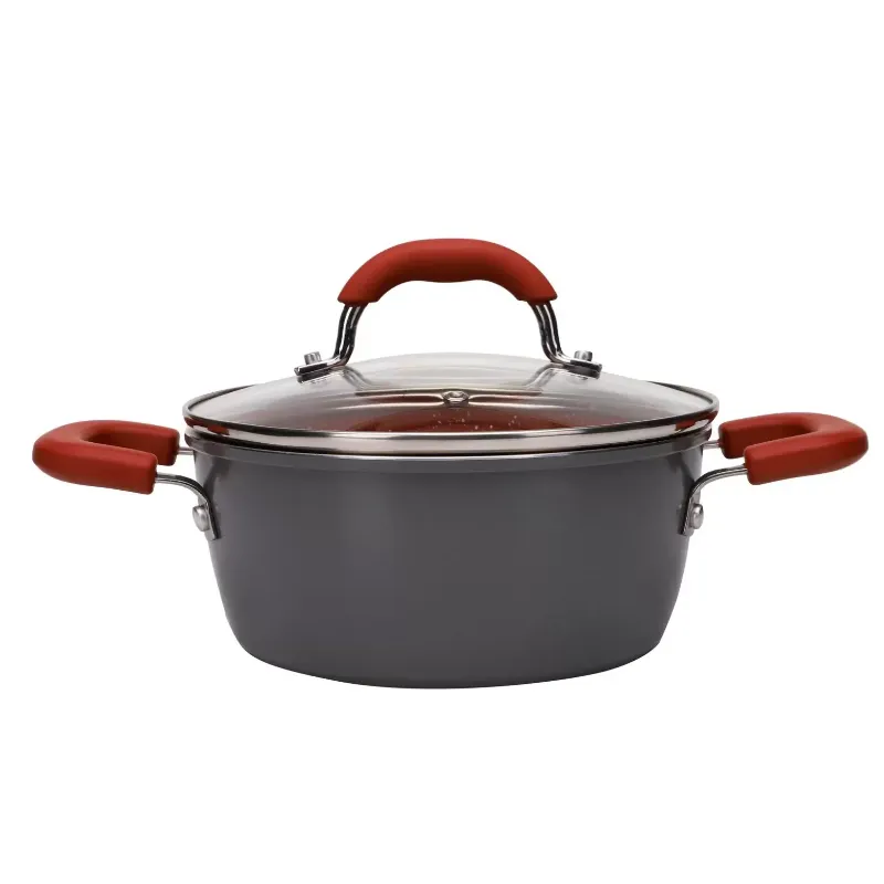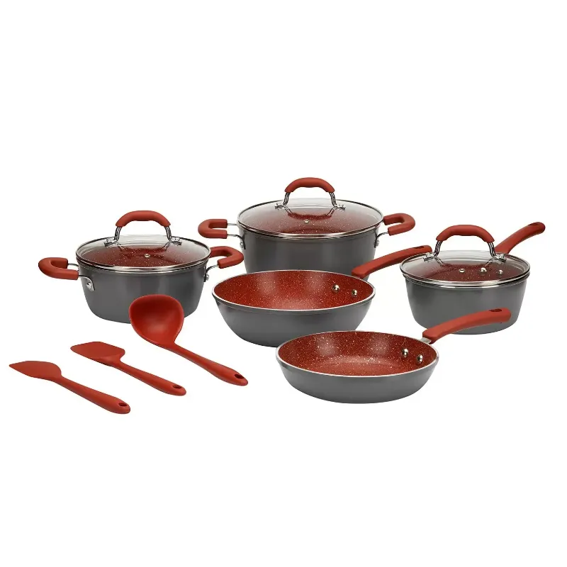 Jogo de Panelas Brinox Revestimento Cerâmico de Alumínio Vermelho e Cinza 8 Peças Ceramic Life Select