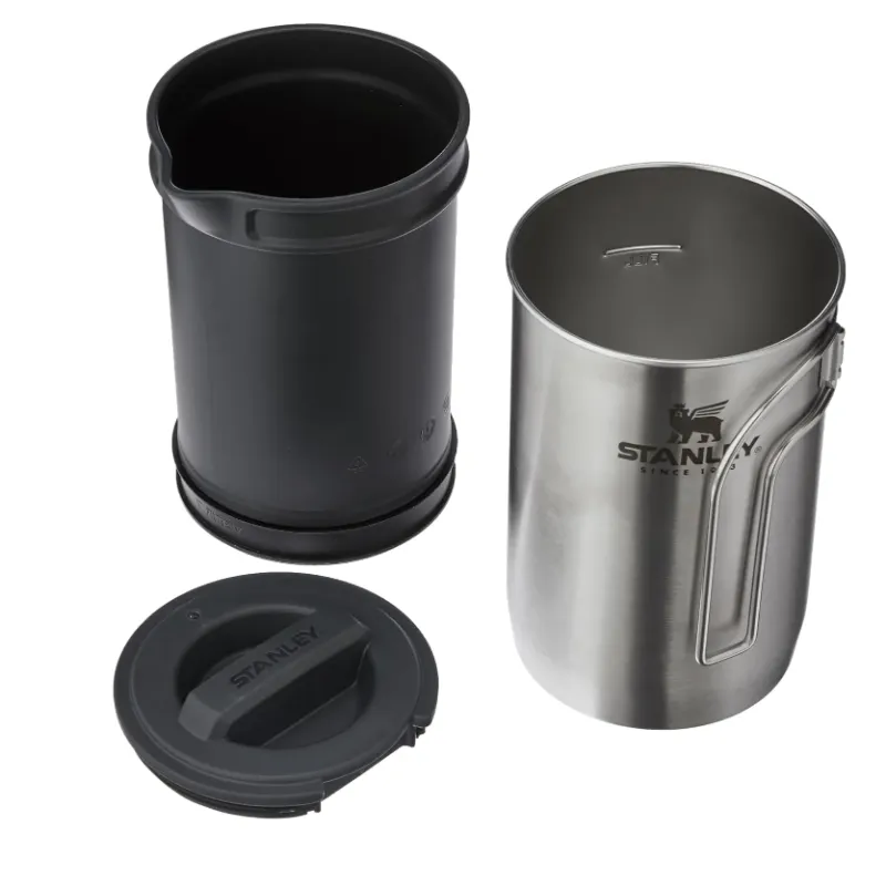 Esta prensa francesa multifuncional Stanley é leve e serve para fazer um café bem quente ou aquecer sua sopa favorita em poucos minutos. Tem uma estrutura de aço inoxidável com uma elegante prensa francesa para que você possa preparar, ferver e cozinhar onde quer que vá.