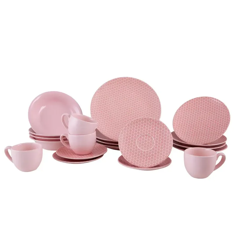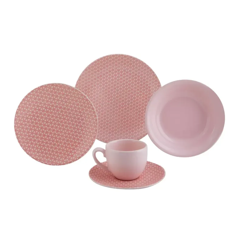 Aparelho de Jantar Chá 20 Peças Haus Cerâmica - Rosa Redondo Soho Geométrico