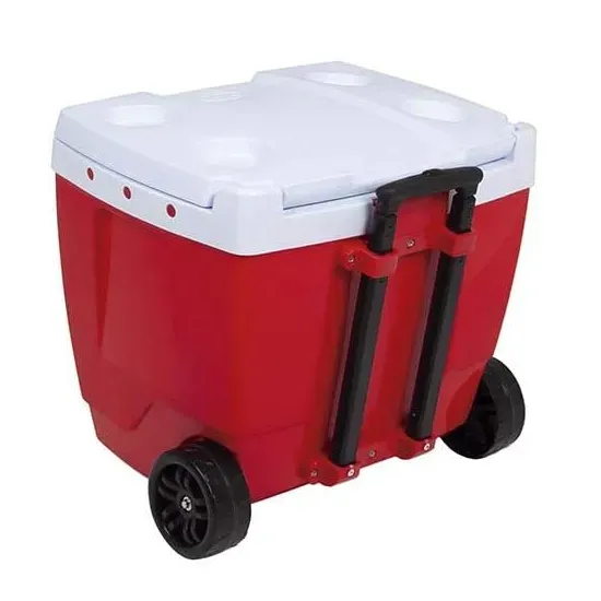 Para acompanhar seu dia na praia, camping ou até mesmo garantir as bebidas geladas para o seu churrasco, a Caixa Térmica 42 Litros MOR é item indispensável!Desenvolvida com polipropileno injetado 100% virgem, atóxico e sem odor a Caixa possui estrutura lisa para facilitar a limpeza, além de isolamento térmico maciço em isopor, garantindo melhor conservação térmica e durabilidade.Projetada para resistir a movimentações e alterações de temperatura, ela conta com prática alça retrátil com três regulagens de altura, além de rodas largas de rolagem suave, que proporcionam uma ótima estabilidade, facilitando deslocamento em todos os tipos de terreno.Seu amplo espaço interno pode acondicionar até 56 latinhas de 350 ml em pé, ou 44 latas de 473 ml deitadas ou em pé, ou 29 garrafas de 600 ml deitadas, ou 8 garrafas de 2 litros deitadas ou de pé ? todas essas capacidades desconsiderando o uso de gelo. Conta ainda com tampa articulada fixa na caixa para evitar o contato com o chão e estrutura projetada para apoiar quatro copos, latas ou garrafas na parte superior. Disponível nas cores azul e vermelha, a Caixa Térmica 42 litros MOR traz praticidade para os seus momentos de lazer e preserva a temperatura de suas bebidas e alimentos por muito mais tempo. Adquira já a sua!