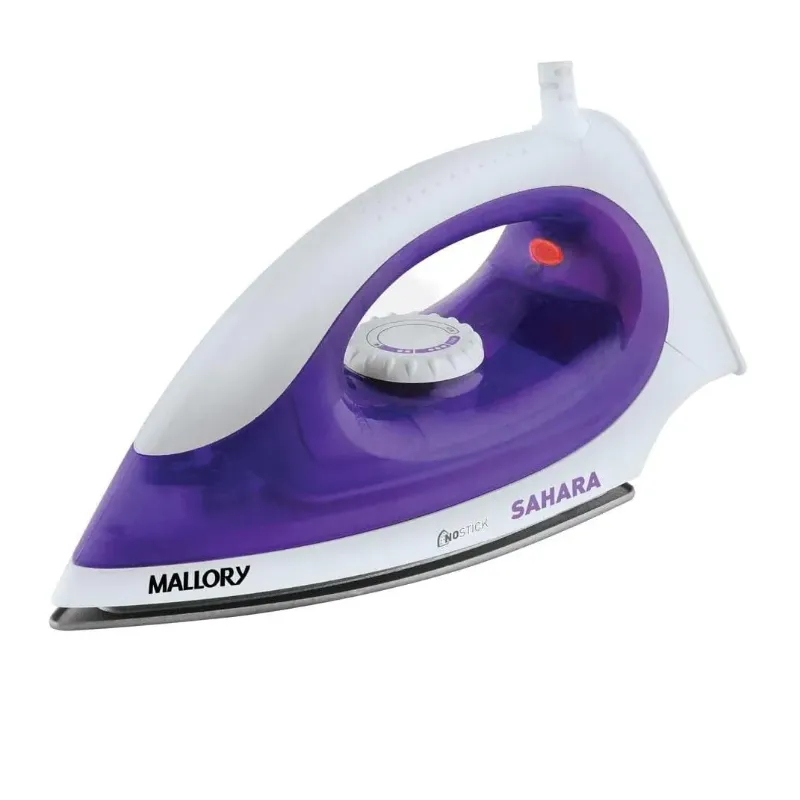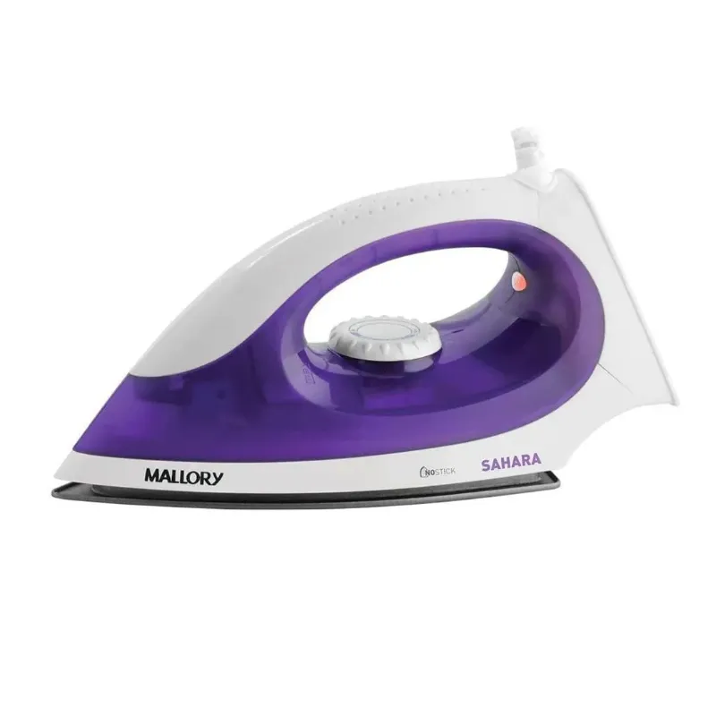 O Ferro a Seco SAHARA da Mallory possui base antiaderente e super deslizante que salva botões, luz piloto e seletor de níveis de temperatura