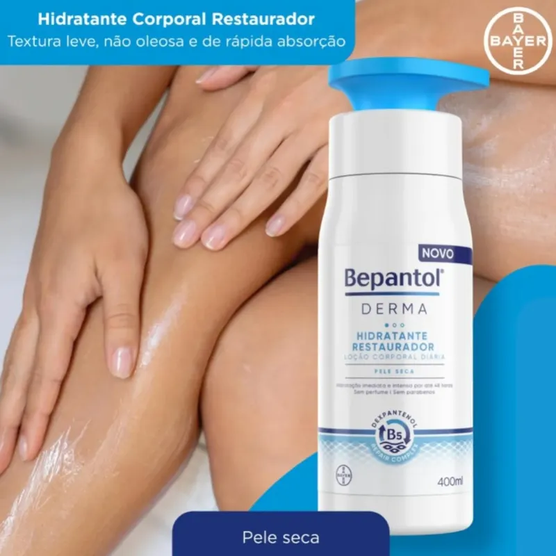 O novo Bepantol Derma Hidratante Restaurador Diário é um produto ideal para a hidratação e restauração da pele seca e irritada. Com uma fórmula exclusiva que contém Dexpantenol Repair Complex, este hidratante oferece uma hidratação imediata e duradoura por até 48 horas*. Além disso, sua textura leve, não oleosa e de rápida absorção ajuda a acalmar e suavizar a pele desde a primeira aplicação. Composto por ingredientes nutritivos e hidratantes como Dexpantenol, Niacinamida, Glicerina, Isoestearato Isopropílico, Óleo de argan e manteiga de karité, este hidratante atua nas causas da pele seca, restaurando a pele de dentro para fora. Enquanto o Dexpantenol age profundamente na pele para reestabelecer o processo de renovação celular, a Niacinamida ajuda a acalmar a pele seca. A Glicerina, um umectante natural, diminui a perda de água da pele e entrega uma hidratação imediata e prolongada. Já o Isoestearato Isopropílico, um lipídio fisiológico, suporta a reorganização da bicamada lipídica. Por fim, o Óleo de argan e a manteiga de karité são ingredientes suaves à pele que substituem os lipídios perdidos pela pele. Experimente agora mesmo o Bepantol Derma Hidratante Restaurador Diário e tenha uma pele macia, suave e profundamente hidratada. *Teste de eficácia comprovado clinicamente.