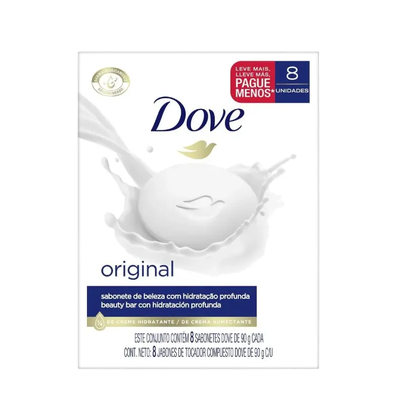 Dove não é um simples sabonete em barra comum. É um sabonete de beleza feito com tecnologia Syndet que vai além da limpeza, nutrindo a pele conforme remove a sujeira do dia a dia. O segredo para uma pele bonita é a hidratação diária, e nenhum sabonete comum hidrata melhor do que Dove. O Sabonete Dove Original combina uma fórmula de limpeza suave com 1/4 de creme hidratante, deixando a sua pele macia, bem cuidada e com a aparência saudável. Sabonete Dove Original não retira a hidratação natural da sua pele como os sabonetes em barra comuns: sua composição com 1/4 de creme hidratante ajuda a repor os nutrientes da pele deixando-a mais bem nutrida e hidratada. Este sabonete em barra possui a fragrância original de Dove. Para uma melhor experiência no banho, sugerimos o seguinte modo de uso: primeiro, molhe as mãos e passe o Sabonete Dove Original até formar uma espuma. Em seguida, massageie a espuma pelo seu corpo e, por último, enxágue com água morna. O Sabonete Dove Original não vai deixar a sua pele seca e áspera como os sabonetes comuns fazem, e você pode usá-lo diariamente no rosto, mãos e no corpo. O Sabonete Dove Original é dermatologicamente recomendado. Você pode ser fã do Sabonete Dove Original, mas com tantas opções, por que não experimentar todos? Afinal, temos um sabonete para cada momento.