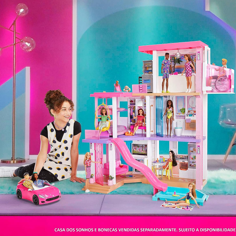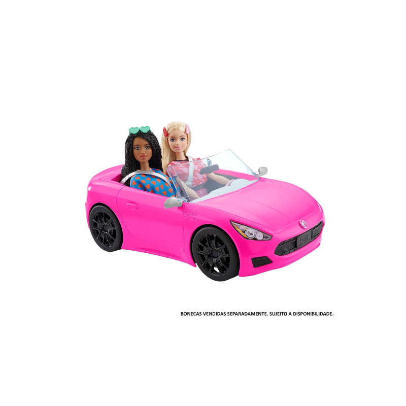 Com o carro conversível cor-de-rosa da Barbie, a imaginação pode pegar a estrada e embarcar em aventuras intermináveis! Este elegante carro conversível inspira todos os tipos de narrativas com um design elegante e acabamentos modernos. O conversível apresenta um formato desportivo, detalhes realistas e o estilo da marca Barbie, como uma placa personalizada e uma decoração no capô com o perfil da Barbie. Com rodas que giram de verdade e espaço para dois, as crianças podem apertar os cintos das suas bonecas Barbie (vendidas separadamente) e dar um empurrãozinho para começar a história! Bonecas vendidas separadamente. As cores e as decorações podem variar.