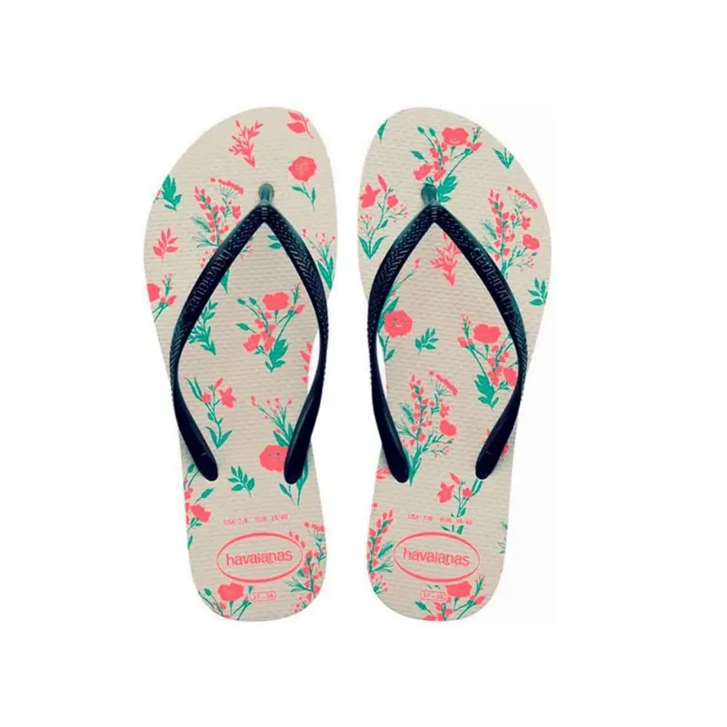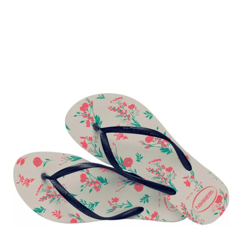 A Havaianas Slim Romance traz uma vibe romântica para o look do dia, mas com os dois pés fincados em uma modernidade, graças à cartela de cores trabalhada nos tons pastéis.