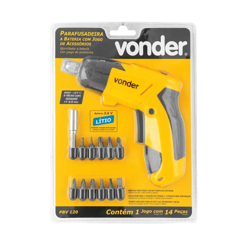 Parafusadeira A Bateria 3,6 V, Bivolt, 12 Acessórios, Pbv 120, Vonder.