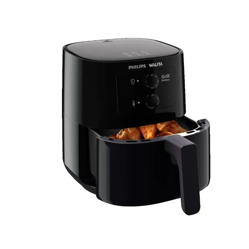 A Fritadeira Elétrica Airfryer Série 3000 Grill Edition Spectre da Philips Walita é compacta por fora e gigante por dentro, com resultados perfeitos e mais rapidez. Possui grelha removível e antiaderente, ela tem a Tecnologia Rapid Air patenteada, que garante o fluxo de ar por todos os lados, dando o cozimento mais rápido e uniforme, deixando os alimentos macios por dentro e crocantes por fora, preparando perfeitamente refeições sem Óleo/Air Fryer para até 4 pessoas. São 1400W e capacidade total de 4,1L em um cesto que tem o formato quadrado, é analógica, tem controle de temperatura e timer. Feito em plástico na cor preta, é 2x mais silenciosa em operação, fácil de limpar, já que a grelha pode ir à lava louças. A fritadeira é ideal para preparar vários alimentos como: Carnes, Legumes, Batata Frita, Bolos, Pão de queijo, Pudim entre outros. Com ela sua rotina na hora de preparar a refeição para a família, será mais prática e com pratos deliciosos.