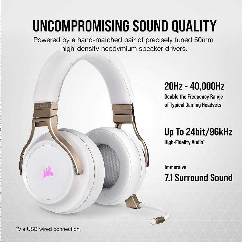 O CORSAIR Virtuoso RGB Wireless proporciona uma experiência de áudio de alta fidelidade aos jogadores mais exigentes, combinando uma qualidade de som incondicional com o conforto permanente das suas almofadas auriculares e arco de espuma com memória de qualidade premium. Possibilidade de conexão a virtualmente qualquer dispositivo por meio da TECNOLOGIA SLIPSTREAM WIRELESS DA CORSAIR de latência ultrabaixa, cabo de 3,5 mm ou USB de 24 bits/96 KHz. Faça-se ouvir com um microfone removível onidirecional com grau de transmissão e uma amplitude dinâmica excepcional. A estrutura de alumínio leve assegura a durabilidade a longo prazo, ao mesmo tempo que um máximo de 20 horas de vida útil da bateria sem fio e os 18 m (60 pés) de alcance proporcionam liberdade absoluta de audição. A iluminação RGB em cada auricular cria um efeito visual refinado enquanto você escuta. O software iCUE da CORSAIR permite personalizar as configurações do equalizador de áudio, controlar a iluminação RGB e proporciona um som surround 7.1 imersivo, fazendo de você o maestro de sua experiência gamer.