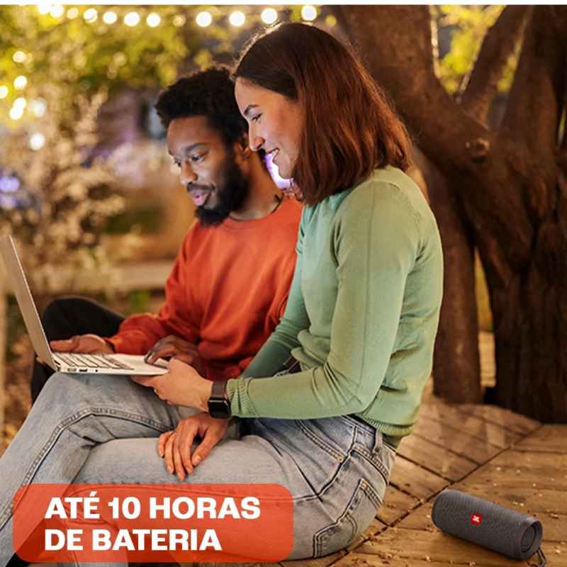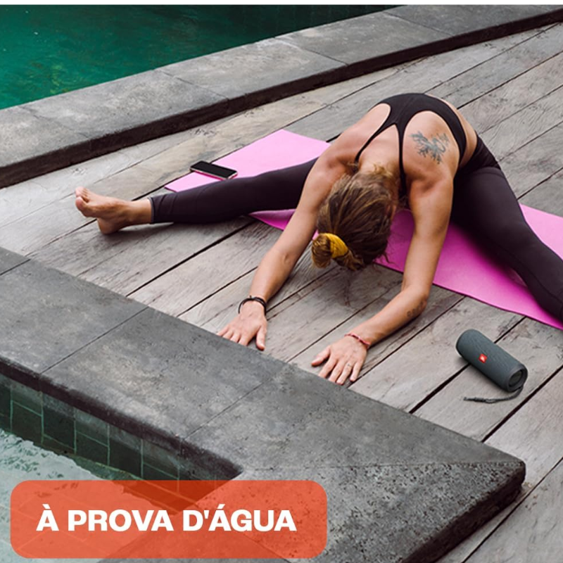 - Transmissão sem fio via Bluetooth / Até 10 horas de reprodução/ Classificação IPX7 à prova d’água/ Materiais de tecido durável / Radiador de graves JBL
