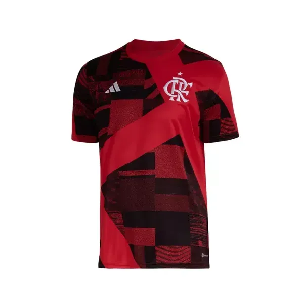 Comemorando uma década com a adidas. Usada pelos jogadores antes dos jogos, esta camisa de futebol do CR Flamengo exibe uma mistura dos designs anteriores dos uniformes de jogo. O tecido AEROREADY que remove o suor e o tecido macio trabalham juntos para garantir que seu corpo permaneça seco e confortável a cada corrida e alongamento.