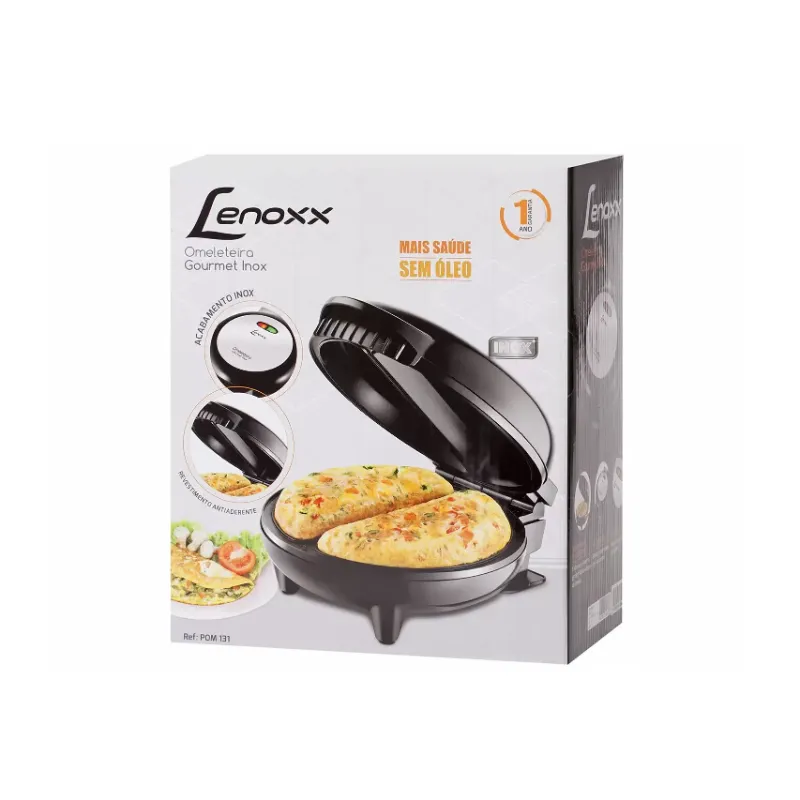 A Omeleteira Elétrica Gourmet Inox da Lenoxx é perfeita para quem busca agilidade e praticidade para o dia a dia. Você pode preparar até 2 omeletes de uma só vez, podendo ser doces ou salgados, você escolhe, ela prepara! Sua chapa é antiaderente, tornando a limpeza mais ágil e eficiente. Possui base com pés antiderrapante, para garantir sua segurança. E para sua maior comodidade, conta luz indicadora de funcionamento e aquecimento. Um produto de alta tecnologia, seguro e eficiente com um designer super moderno na cor preto e inox, para você arrasar na sua cozinha.