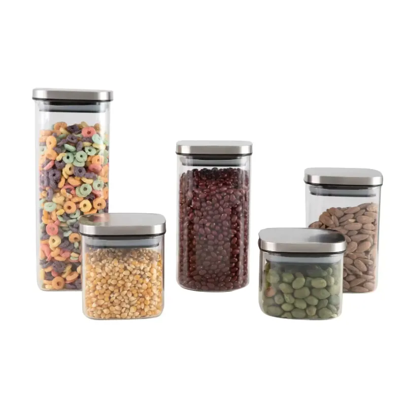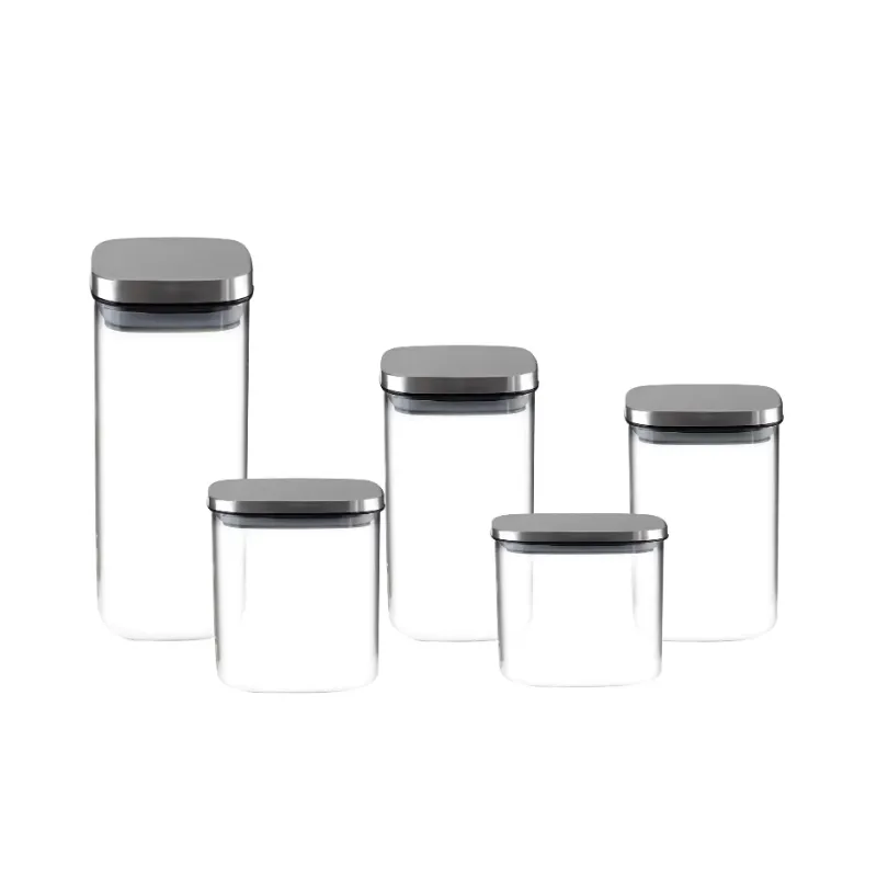 Jogo de Porta-Mantimentos Vidro Quadrado Nell 5 Peças