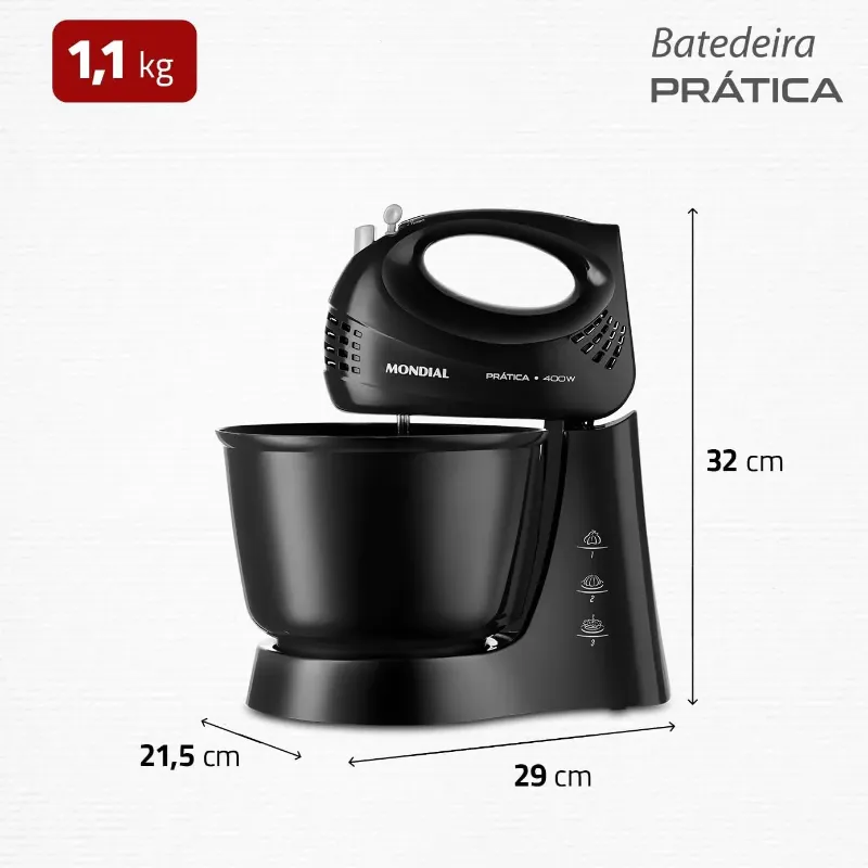Batedeira Prática, Mondial, Preto, 400W, 110V - B-44-B