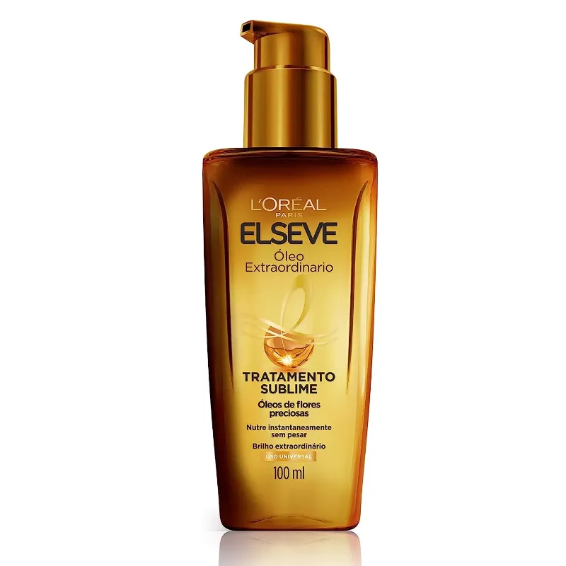 O Óleo Extraordinário Elseve de L'Oréal Paris é um delicado óleo leave in que proporciona tratamento profissional para a beleza dos seus cabelos. Possui 6 óleos de flores preciosas, com efeito condicionante, capaz de transformar a fibra para tornar sublime qualquer tipo de cabelo. Penetrando as fibras capilares, o Óleo Extraordinário de Elseve trata profundamente, produzindo brilho instantâneo, além de proteger os fios do calor da chapinha. Pode ser usado antes da aplicação do shampoo, como finalizador, antes do uso do secador ou a qualquer momento do dia. Escolha sua maneira de usar e impressione! Tecnologia: Criado para uma hidratação profunda dos cabelos, a fórmula de Óleo Extraordinário é leve e não gordurosa e age adaptando-se a qualquer tipo de cabelo. Hidrata até os cabelos mais secos, fornecendo-lhes nutrição, maciez e brilho intenso. Os cabelos secos ficam hidratados, nutridos e macios. Benefícios: - Nutrição - Brilho - Leveza - Maciez - Hidratação - Suavidade -Anti frizz -Protetor Térmico Ativo: 6 óleos de flores preciosas Modo de Uso: Aplicar 3 a 4 pressões em todo o cabelo. O óleo extraordinário é leve e multiuso, pode ser usado tanto em cabelos molhados quanto secos. - Antes da escova: para nutrir os fios. - Como finalizador: para malear a fibra - Em qualquer momento: para disciplinar o frizz e ressaltar a luz dos cabelos.