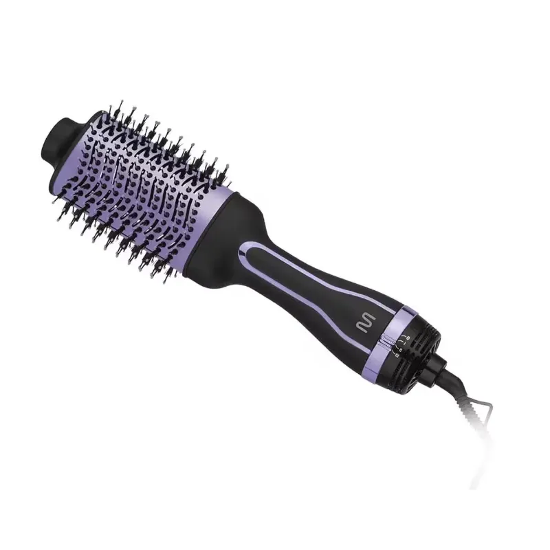 A escova secadora oval Lilás Bivolt, possui 1350W de potência, facilitando na secagem dos cabelos, alisando ou modelando conforme sua escolha.
