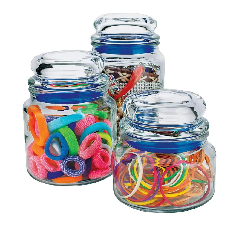 Conjunto Potes de Vidro Multiuso 3 Peças Euro Azul