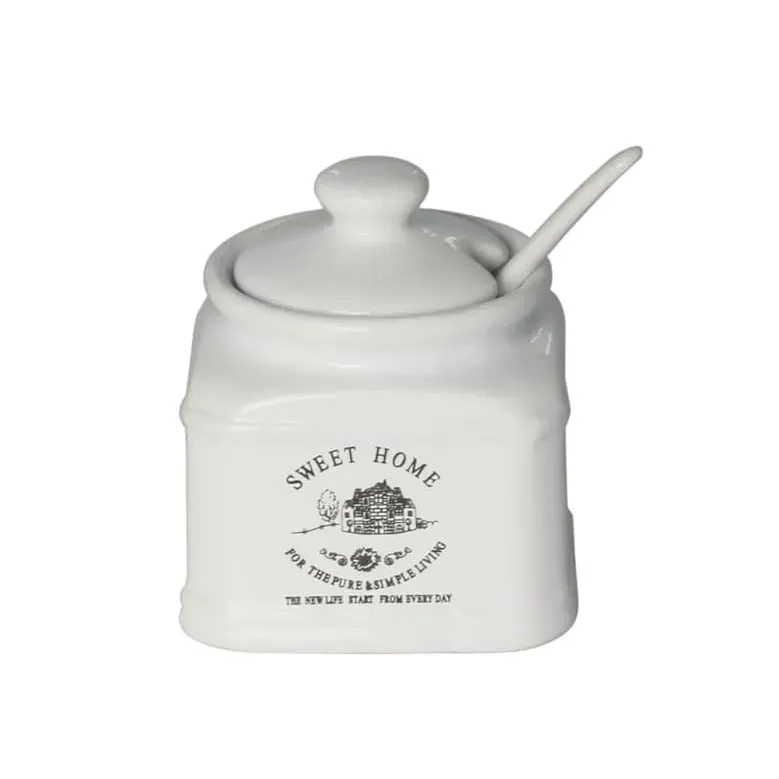 Açucareiro de Cerâmica com Colher Sweet Home 8cm x 8cm x 9cm - Lyor