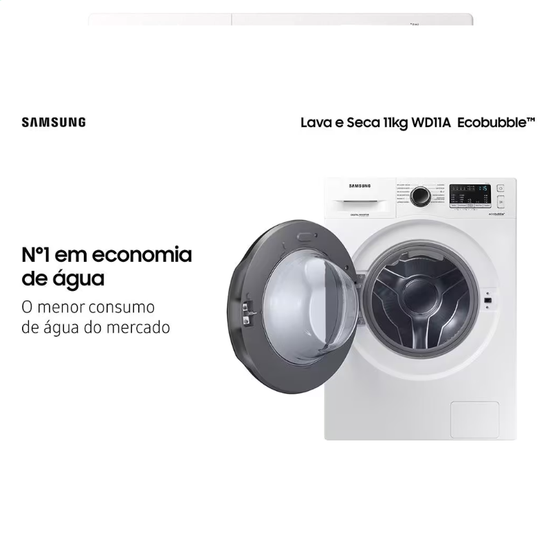 Lava e Seca Samsung 3 em 1 Branca com Ecobubble e Lavagem a Seco - 11Kg WD11A4453BW Branca