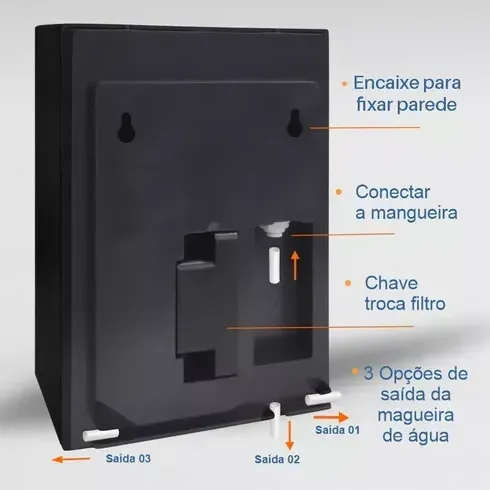 8-Possui um sistema de tripla filtragem com carvão ativado é capaz de eliminar odores e sabores indesejáveis da água além do excesso do Cloro.