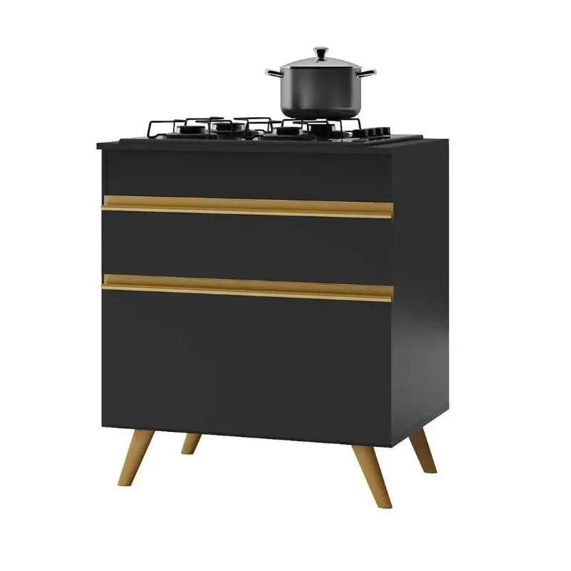 Balcão Cozinha para Cooktop 70 cm 1 Porta 1 Gaveta Veneza GB Multimóveis Preto