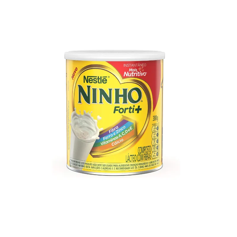 Ninho forti+ é o leite integral instantâneo da Nestlé, rico em cálcio, ferro, zinco, vitamina a, d, c e e essenciais para a nutrição das crianças. Ninho forti+ integral está disponível nas embalagens de lata 380g.