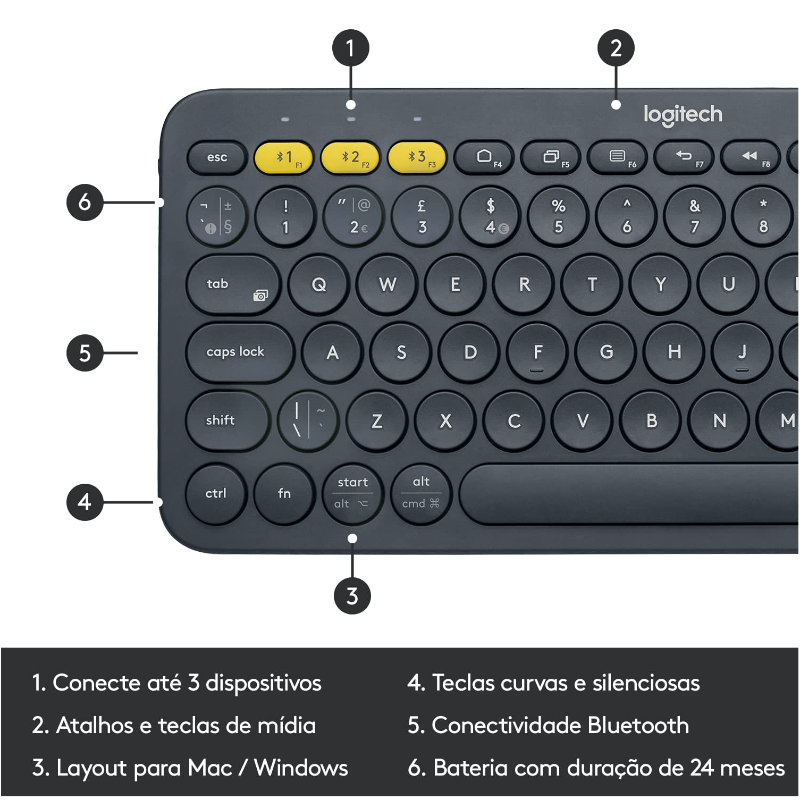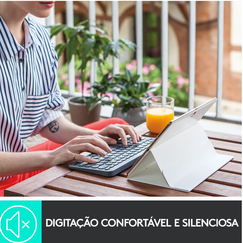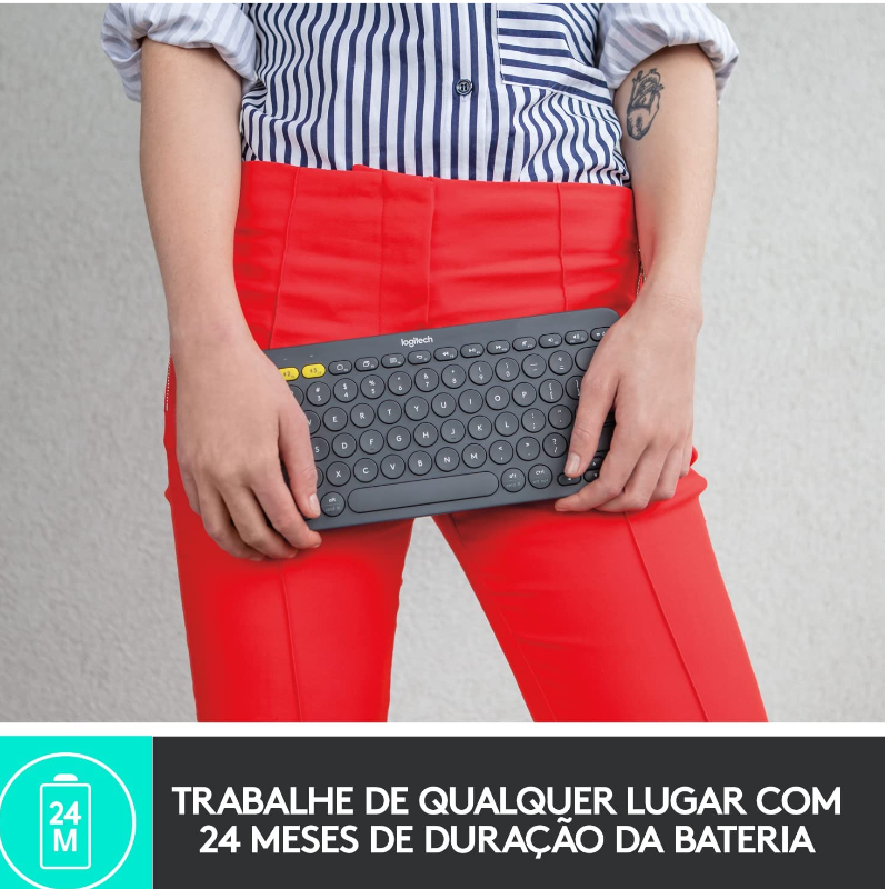 Teclado sem fio Logitech K380 com Conexão Bluetooth para até 3 dispositivos e Pilha Inclusa para PC, Mac, Android, iOS e Apple TV