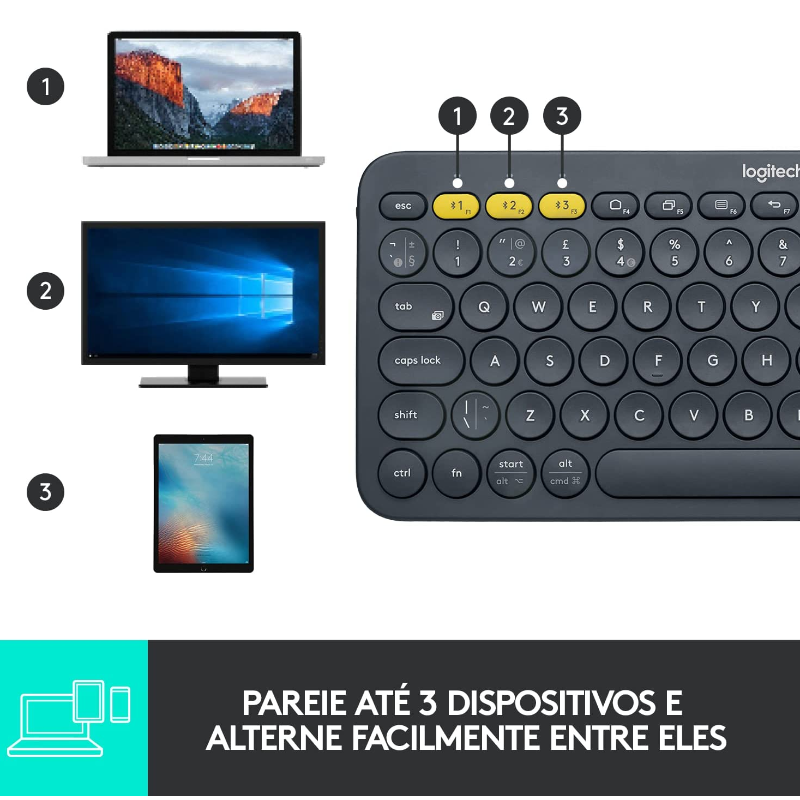 Teclado sem fio Logitech , Conexão Bluetooth Compatível ,PC, Mac