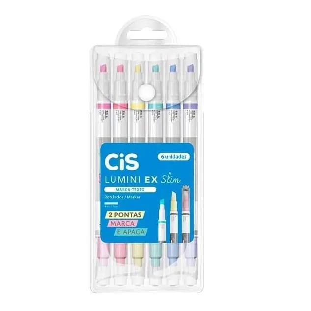 Caneta Marca Texto, Cis Lumini, Ex Slim, 6 Cores, Sertic, Estojo