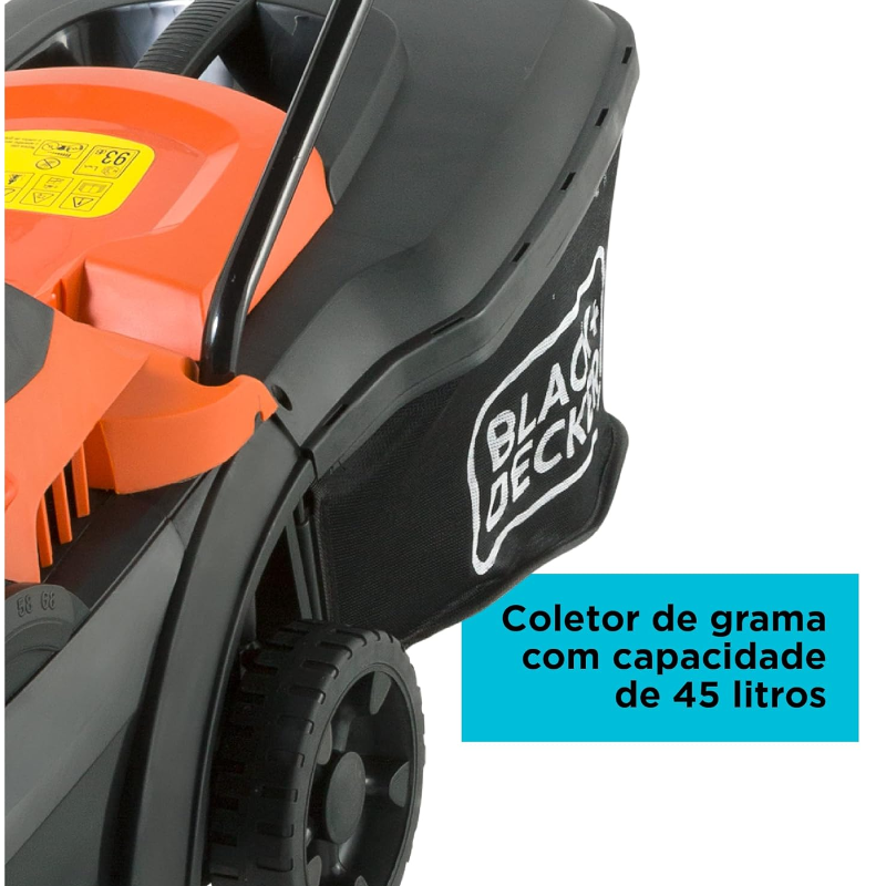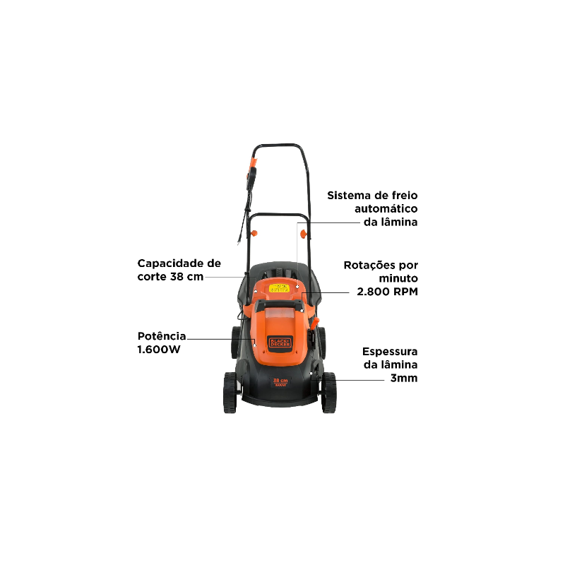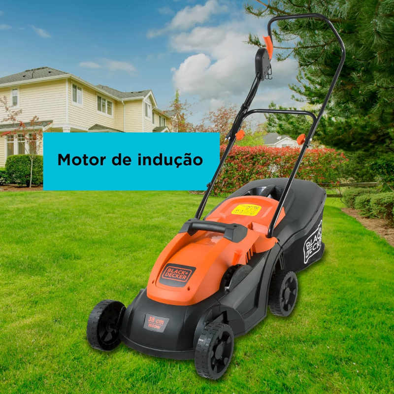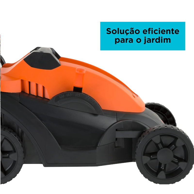 Cortador de Grama Elétrico de 38cm com saco coletor de 45 litros, potencia de 1.600W, e com motor de Indução.