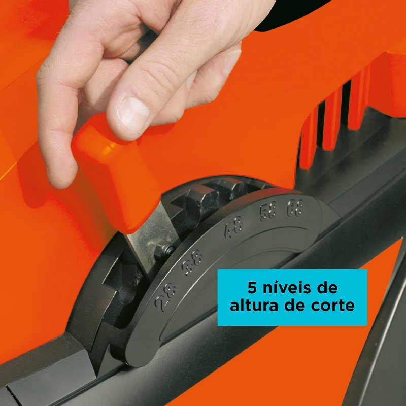 - 5 níveis de altura de corte: 28, 38, 48, 58, 68 cm