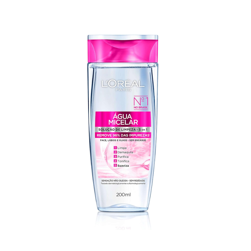 "A Água Micelar Solução de Limpeza 5 em 1 de L'Oréal Paris é composta por partículas chamadas micelas que agem como ímãs captando e eliminando as impurezas e a maquiagem da face. Podendo ser usada no rosto, lábios e olhos, a Água Micelar de L'Oréal Paris limpa, reequilibra, purifica e suaviza até as peles mais sensíveis. São 5 benefícios em um único produto. Para todos os tipos de pele, graças a sua fórmula não oleosa. 5 benefícios em um único produto: 1. Limpa 2. Demaquila 3. Purifica 4. Suaviza 5. Reequilibra Tecnologia: A Água Micelar de L'Oréal Paris é composta por partículas chamadas de micelas que agem como ímãs captando e eliminando as impurezas e a maquiagem da face. Fabricado no Brasil para a pele das brasileiras! Oftalmologicamente e dermatologicamente testado."