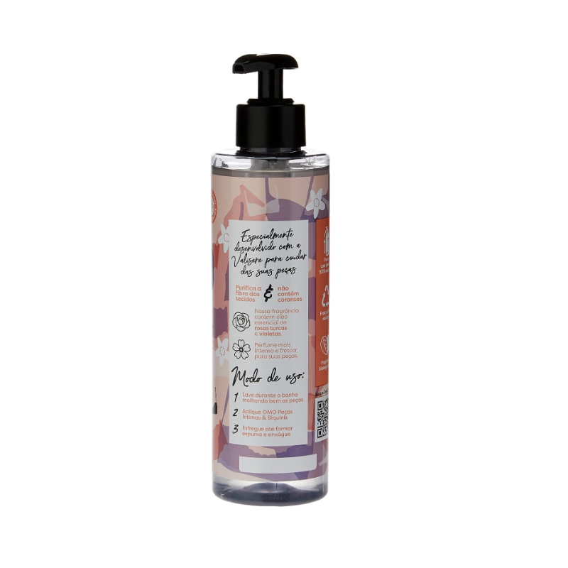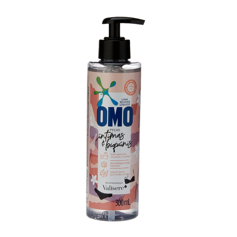 Chegou o novo Sabão Líquido OMO Peças Íntimas e Biquínis, perfeito para aquelas peças que merecem o seu maior cuidado, carinho e proteção. Especialmente desenvolvido com a Valisere para cuidar das suas peças, OMO Peças Íntimas e Biquínis purifica a fibra dos tecidos e não contém corantes, além de possuir pH balanceado e ser dermatologicamente testado. Sua fragrância contém óleo essencial de rosas turcas e violetas e é biodegradável. Perfume mais intenso e frescor para as suas peças. Primeiro OMO que você também pode levar para o seu banheiro. Modo de Uso: 1. Lave durante o banho molhando bem as peças; 2. Aplique OMO Peças Íntimas & Biquínis; 3. Esfregue até formar espuma e enxágue. Além disso tudo, o novo OMO Peças Íntimas e Biquínis se preocupa com o meio ambiente. Sua fórmula contém ativo biodegradável, ajudando a preservar rios e oceanos. Seu frasco é feito totalmente de plástico reciclado e é 100% reciclável. Para saber mais sobre a linha de produtos OMO, OMO Tira Manchas e OMO Desinfetantes.