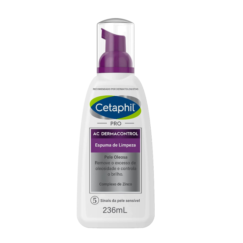 Cetaphil Pro AC Control Espuma de Limpeza 236ml, Limpa sem ressecar e acalma a pele irritada. Clinicamente comprovado para remover o excesso de oleosidade e controlar o brilho da pele.