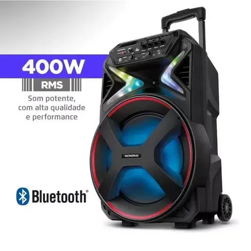 Caixa De Som Amplificada Bluetooth CM400 400W Mondial é perfeita para quem busca qualidade sonora em festas e encontros com amigos ou família. Com 400W RMS de potência, proporciona máxima performance.